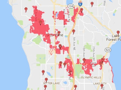 As of 9PM Seattle City Light reports about 5700 customers without power in Shoreline and Lake Forest Park.